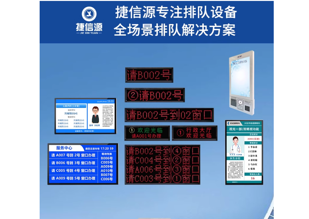 深圳市捷信源科技有限公司是一家專業生產叫號機、排隊叫號機、大廳排隊機、銀行排隊機、醫院排隊叫號系統、政府排隊系統、餐廳排隊叫號機、微信預約系統、排隊取號機、LED顯示屏,查詢機、呼叫機、服務評價器等設備的供貨廠家。作為深耕智能排隊叫號機多年的廠家,我們生產、銷售的排隊叫號機價格公道、服務周到,歡迎大家選···